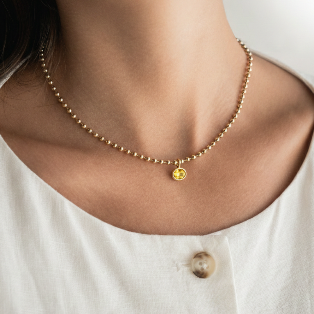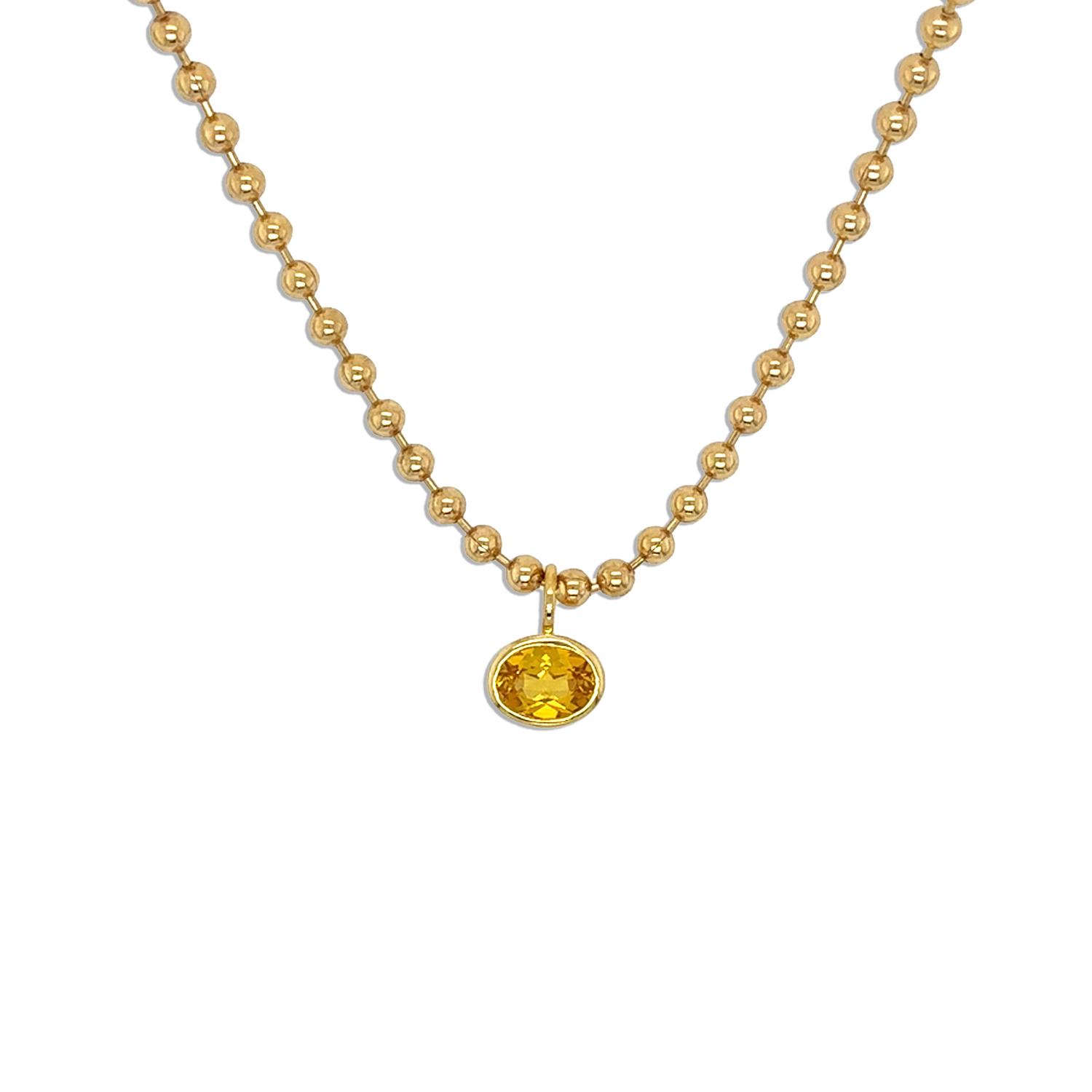 - 14k vermeil yellow gold bezel set lab citrine gemstone oval pendant