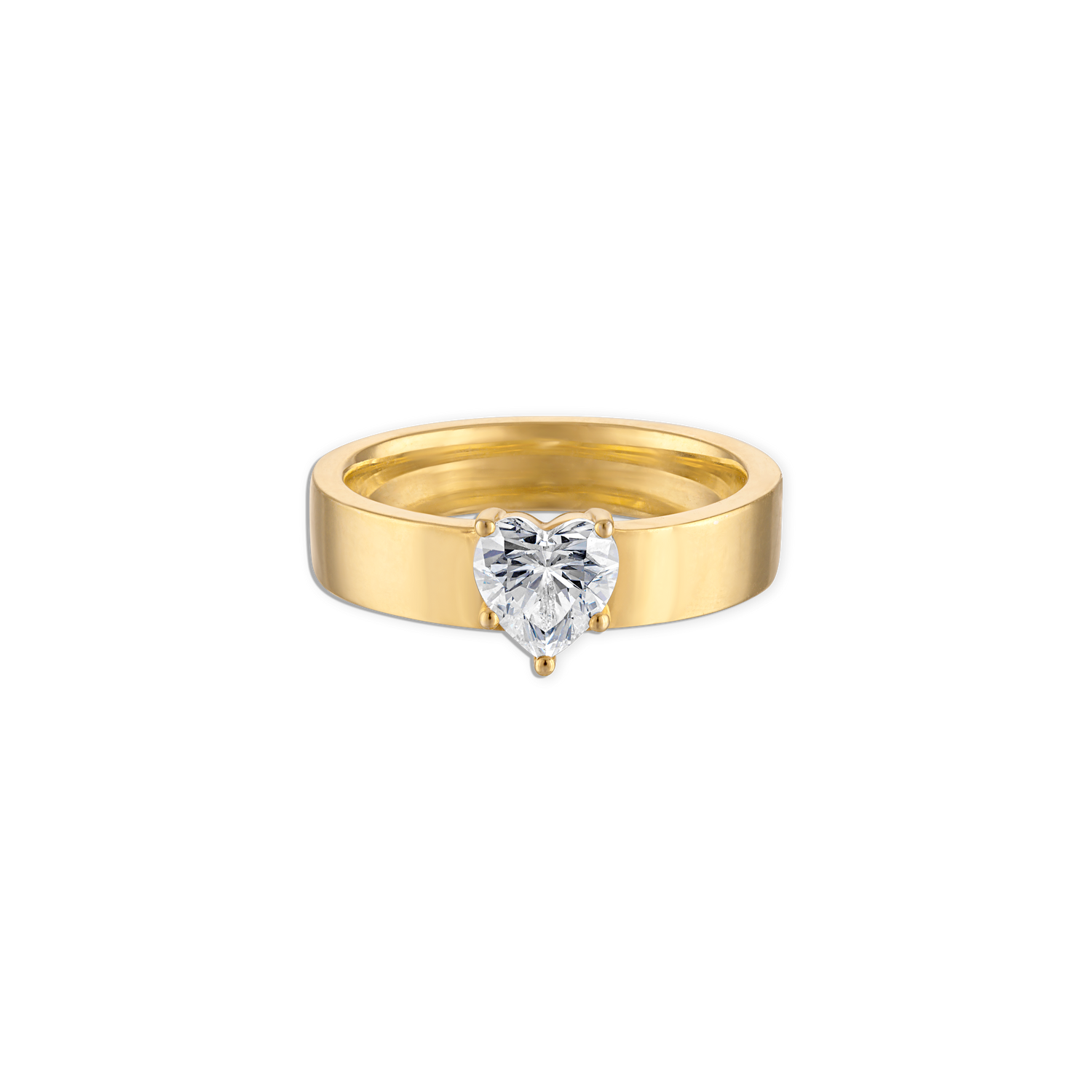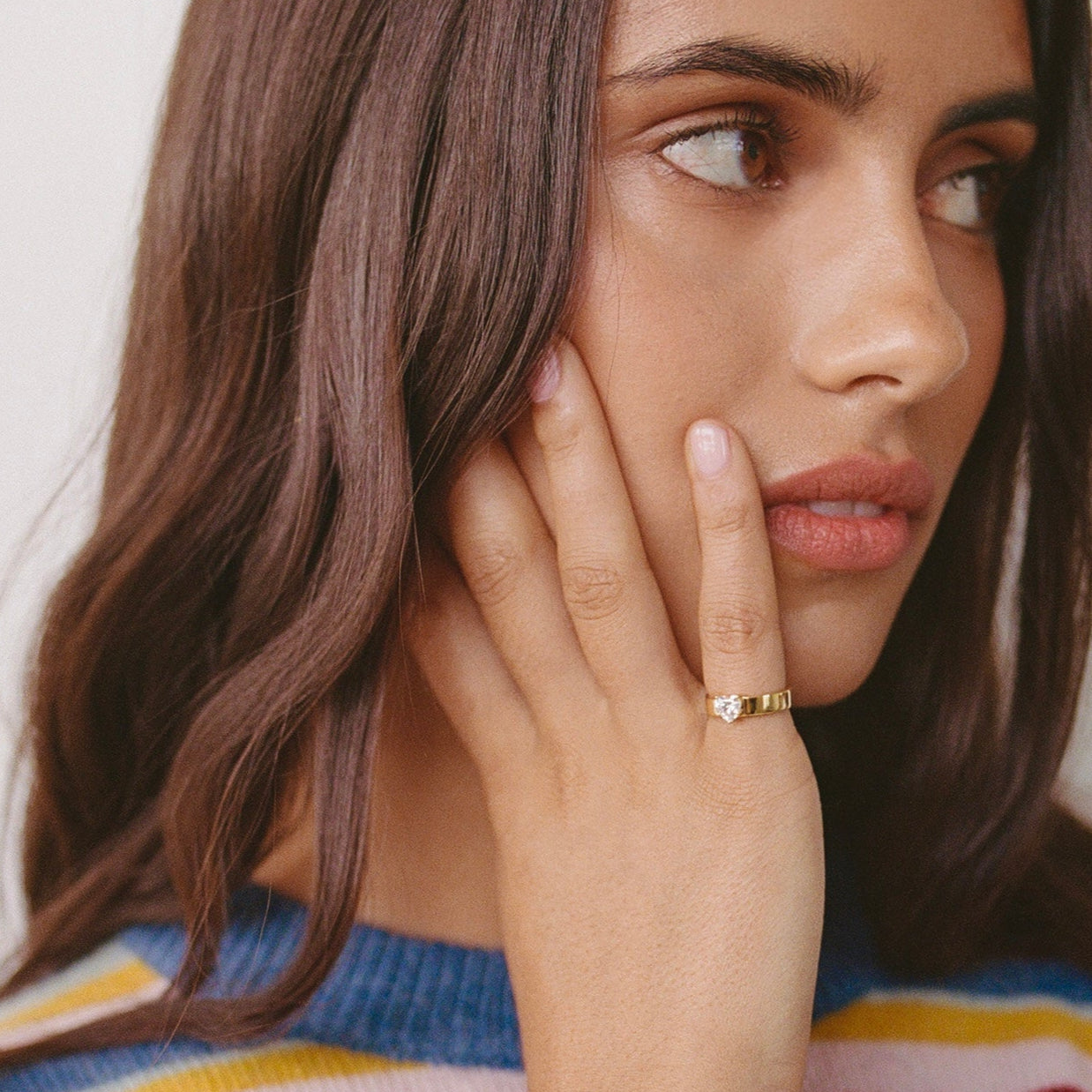 - Vermeil yellow gold pinky ring with prong set lab gemstone heart