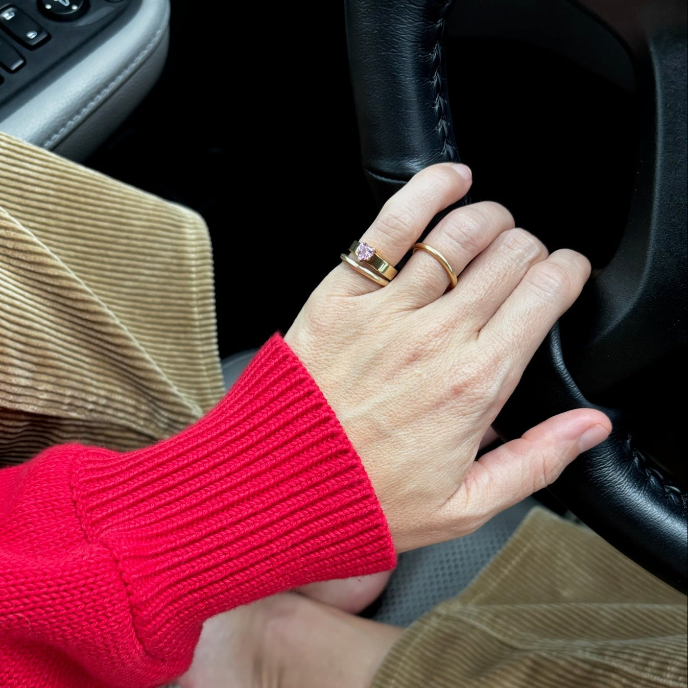 - 14k vermeil yellow gold pinky ring with prong set lab pink gemstone heart