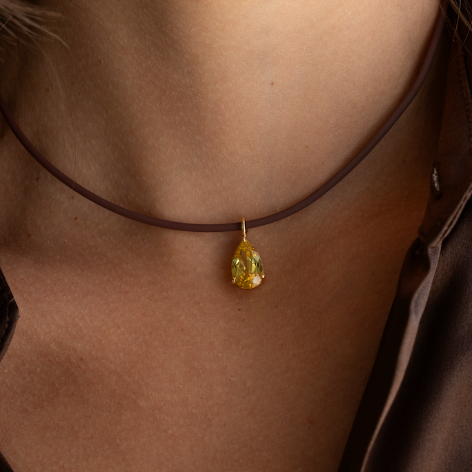 - Vermeil yellow gold lab yellow gemstone pear pendant, 13x8mm