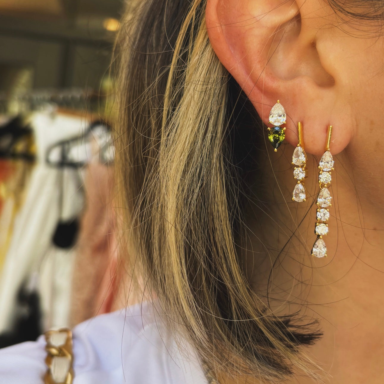 - Model can be seen pairing it with our Mini Linea Drip Earring