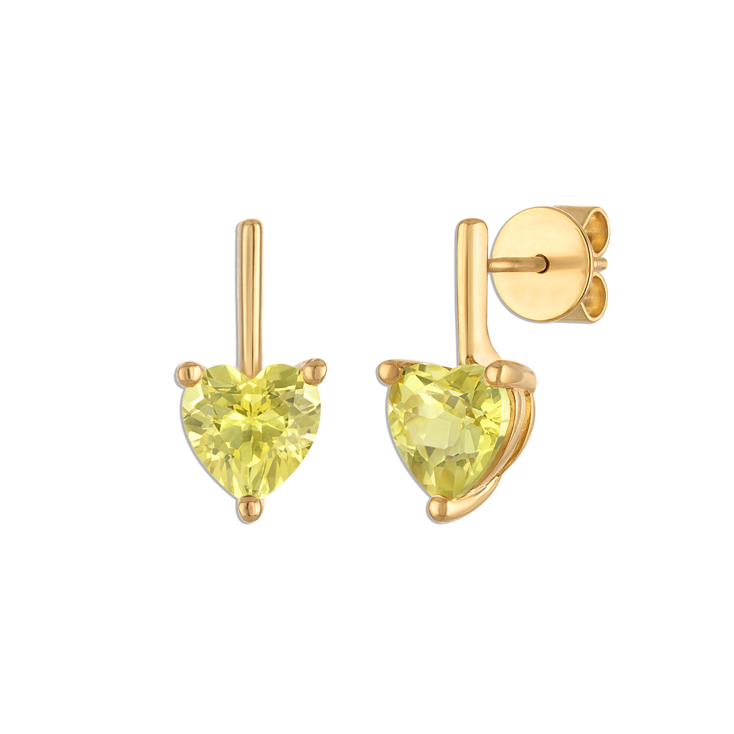 - Vermeil yellow gold bar stud with heart shaped lab yellow gemstone drop