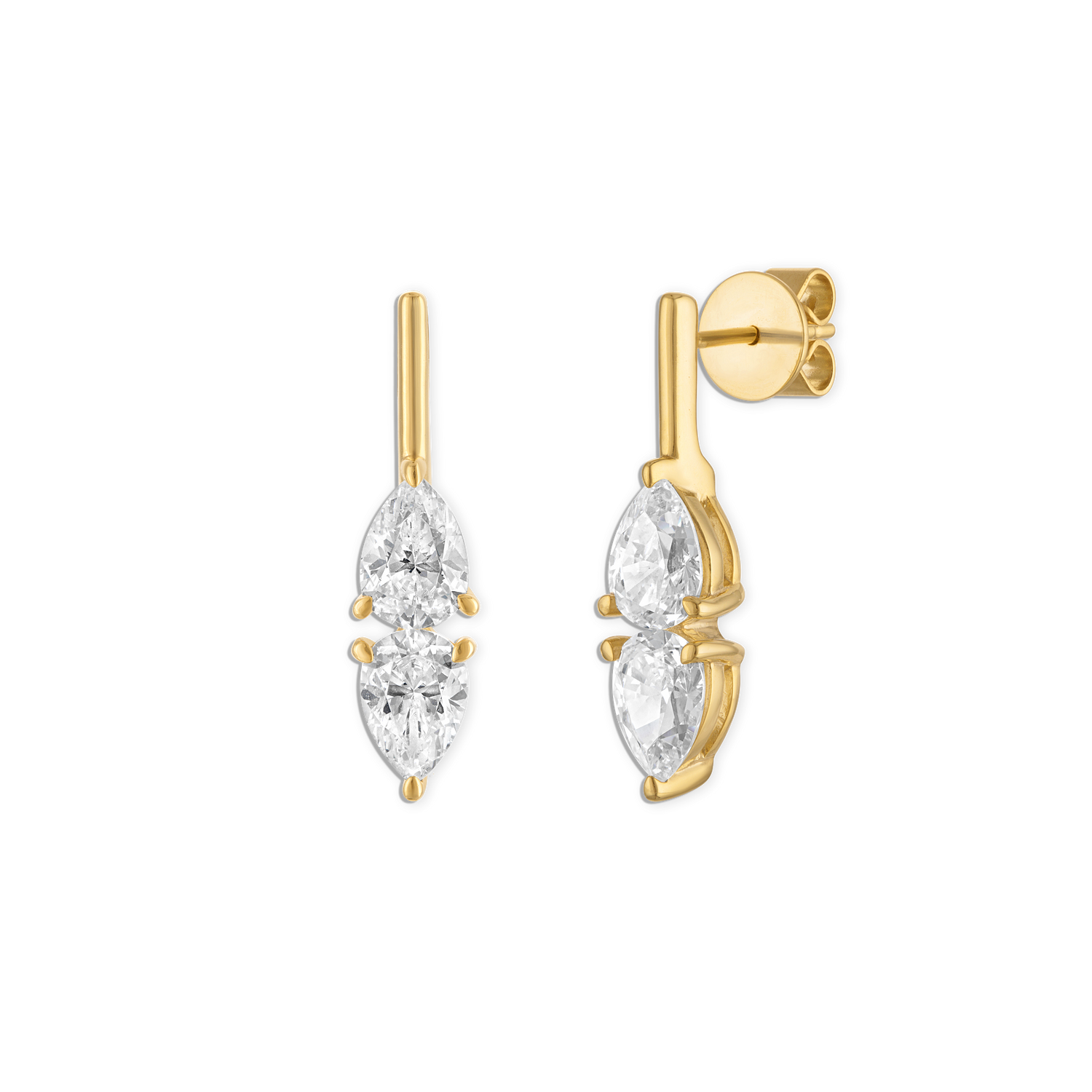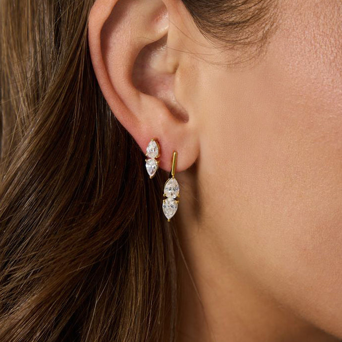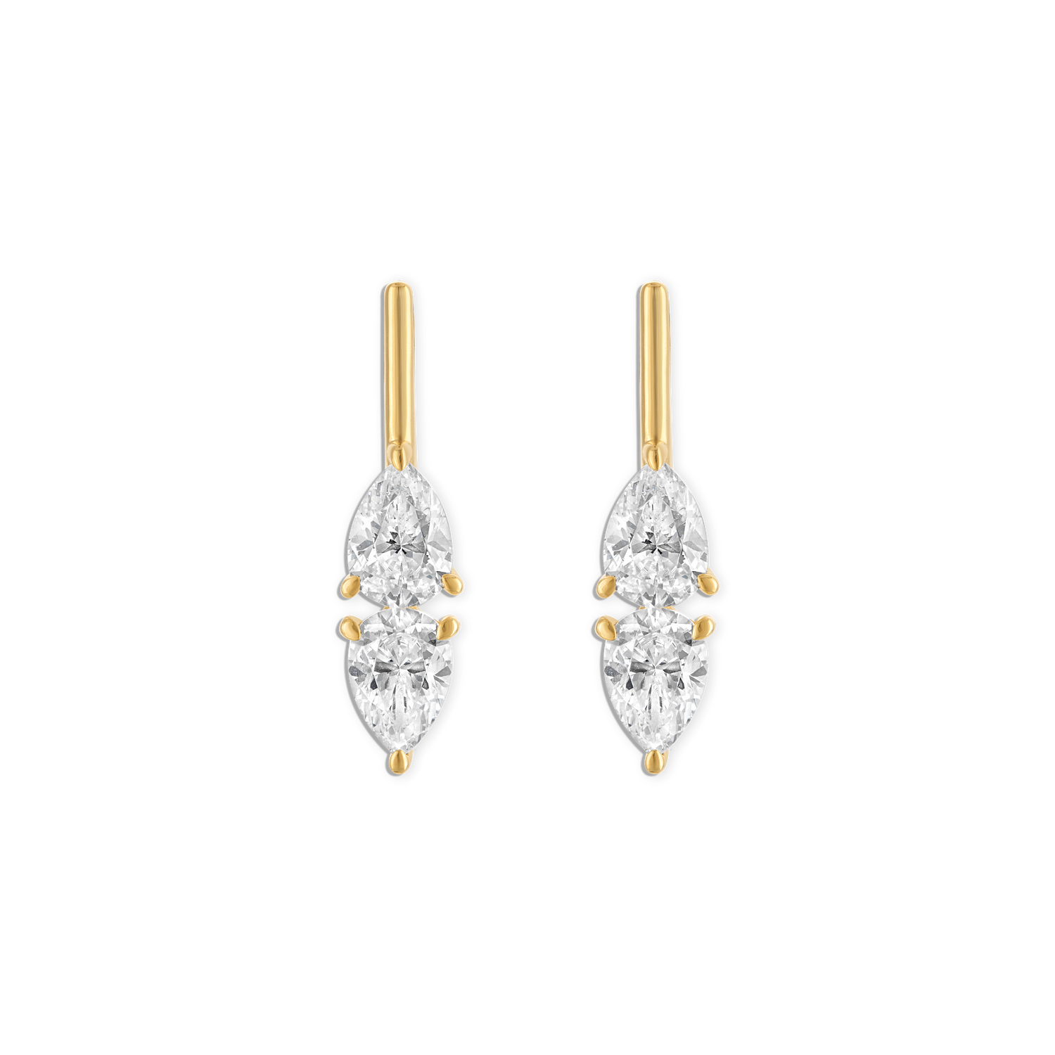 - 14k vermeil yellow gold double lab gemstone pear bar stud