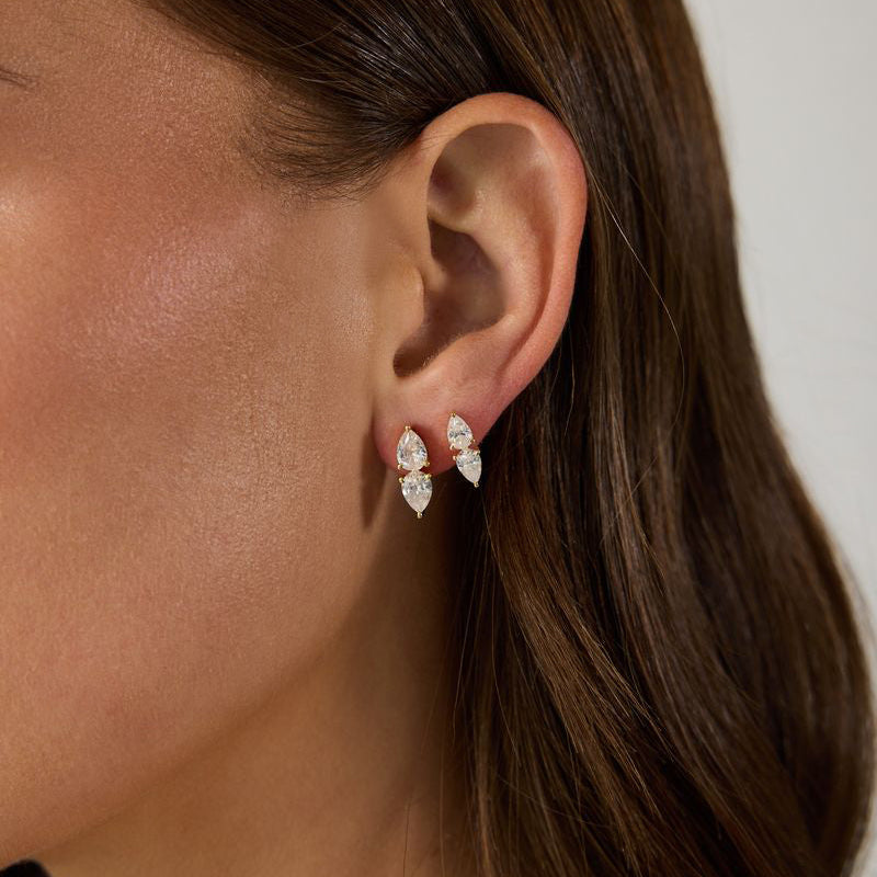 - 14k vermeil yellow gold double lab gemstone pear earring, 6x4mm stones