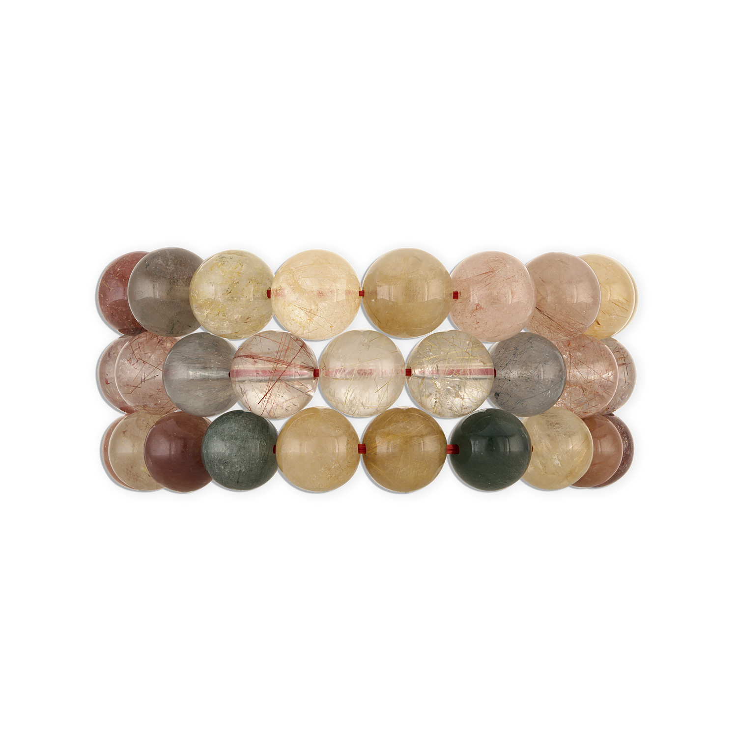 - Stack of three 10mm dark natural tone round beaded bracelets