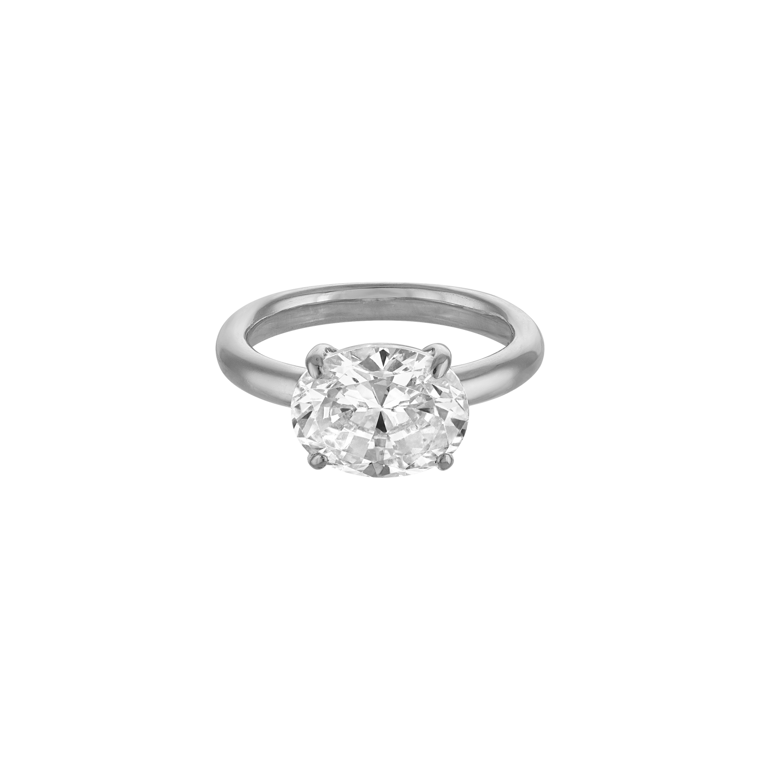 - Sterling silver pinky ring with prong set lab gemstone E/W oval, 9x7mm