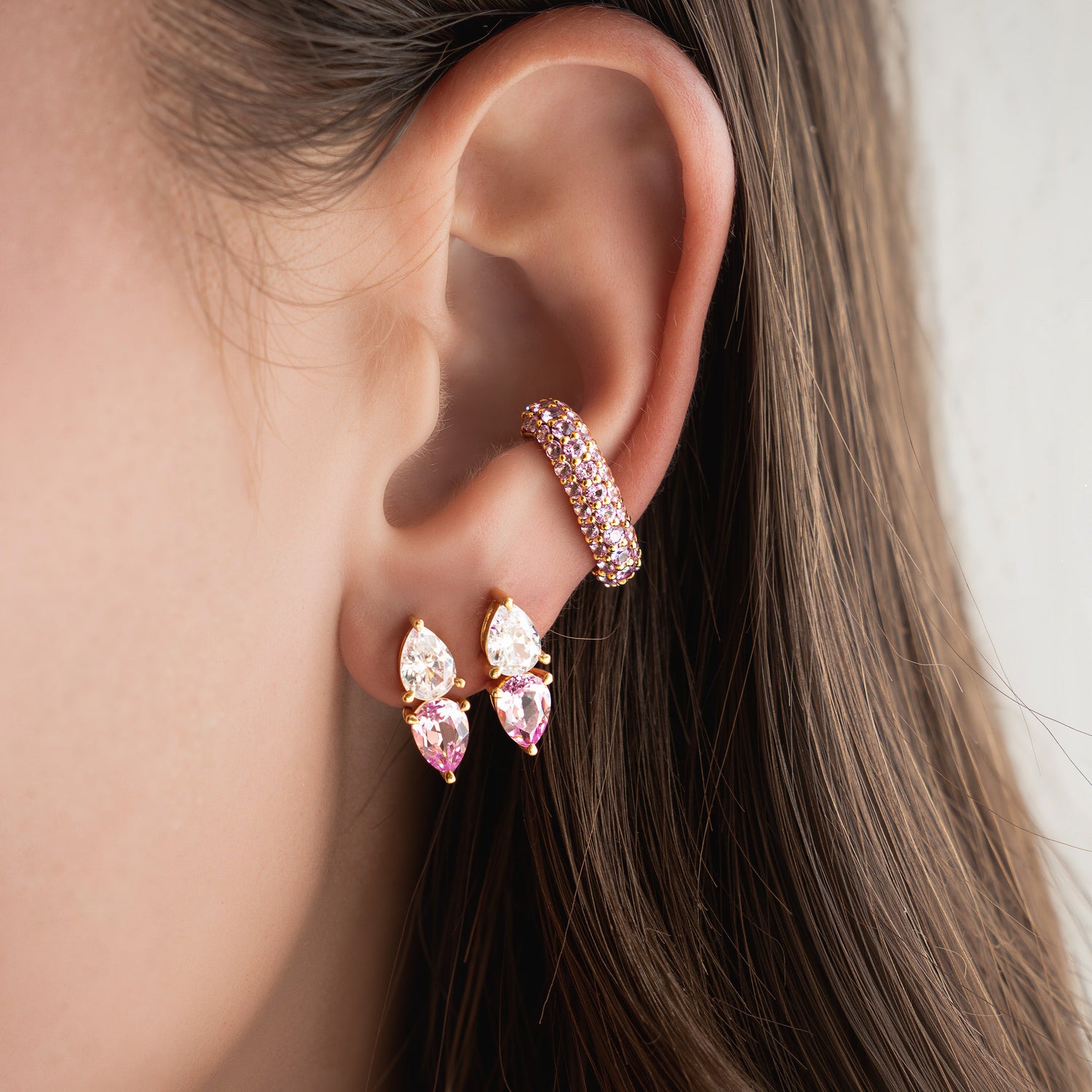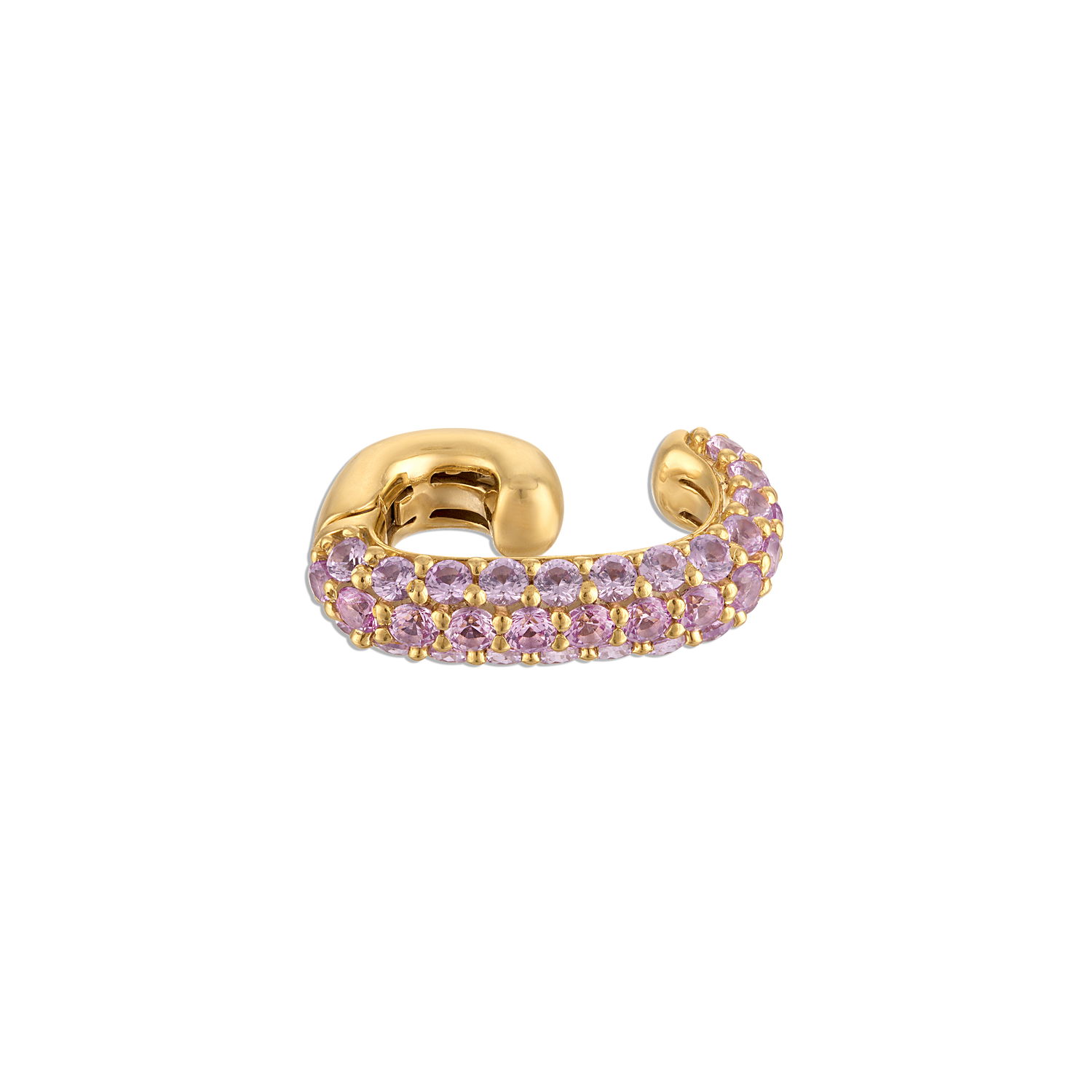 - 1x single 14k vermeil yellow gold pave lab pink gemstone ear cuff