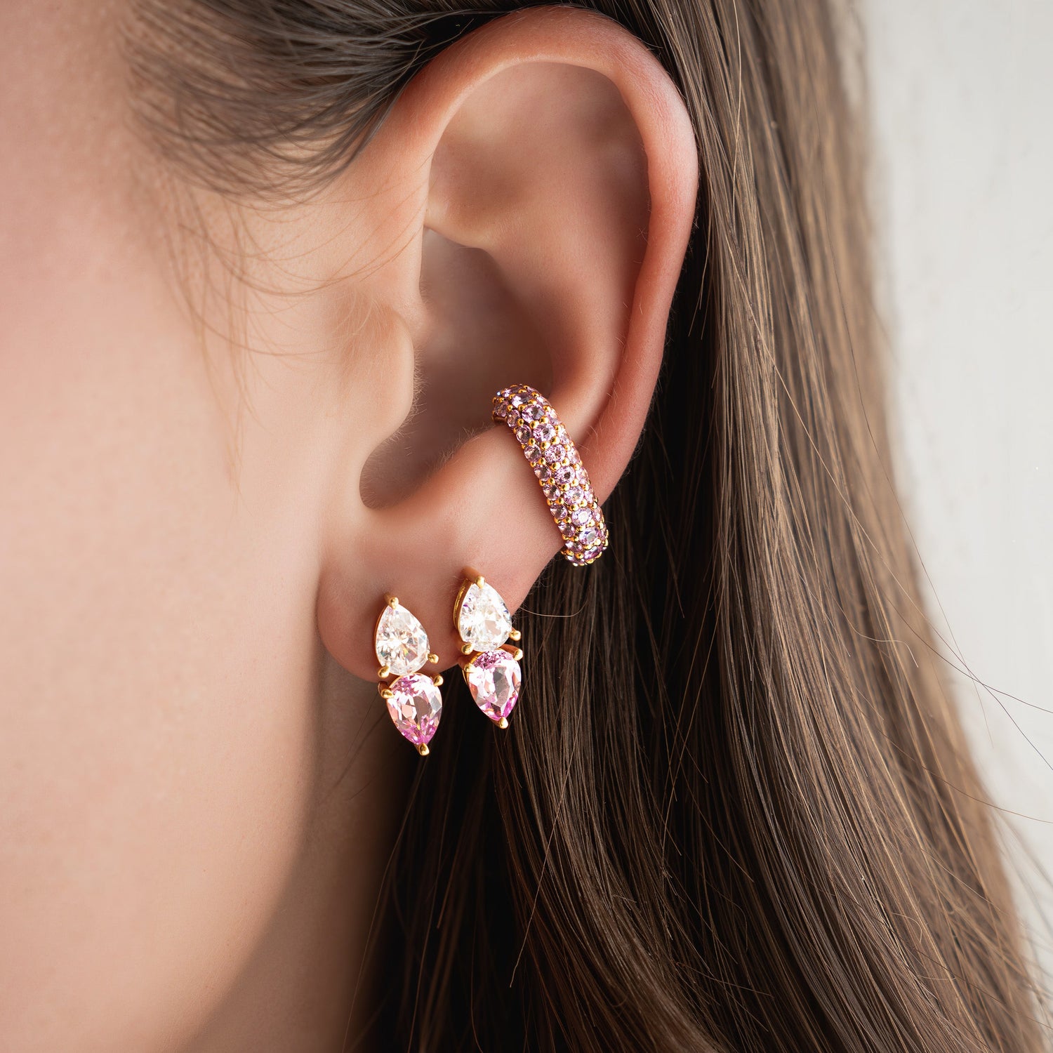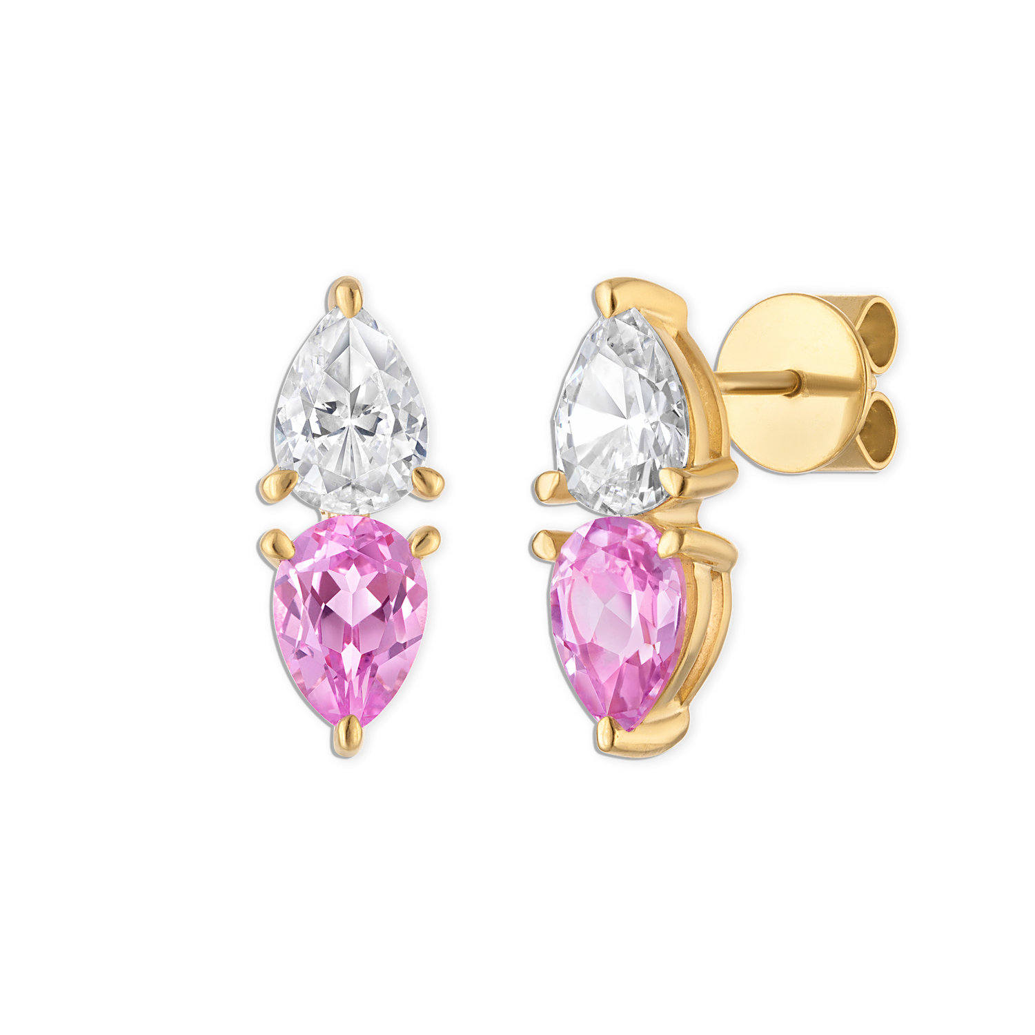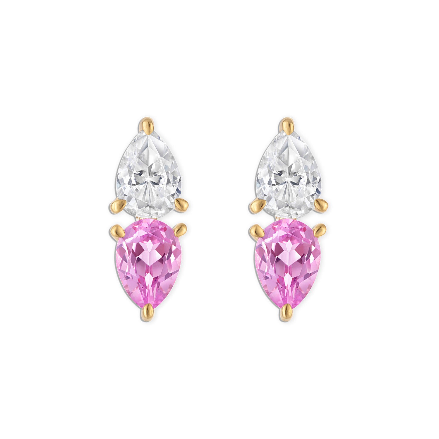 - Vermeil yellow gold double lab white and pink gemstone pear earring, 7x5mm stones