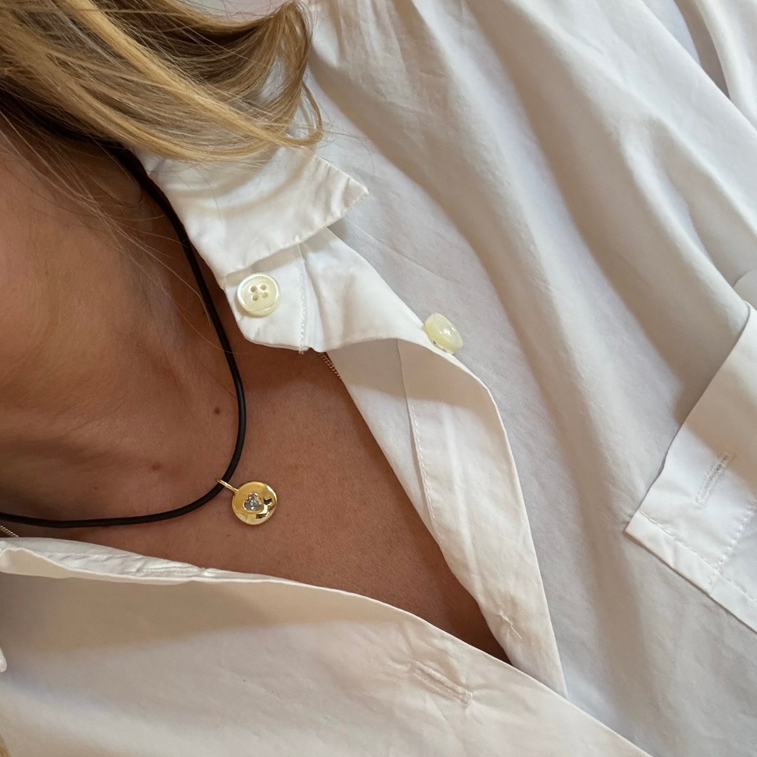 - 24k gold filled 18mm x 11.7mm round charm with clear CZ center
