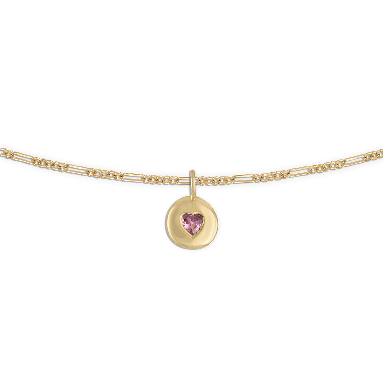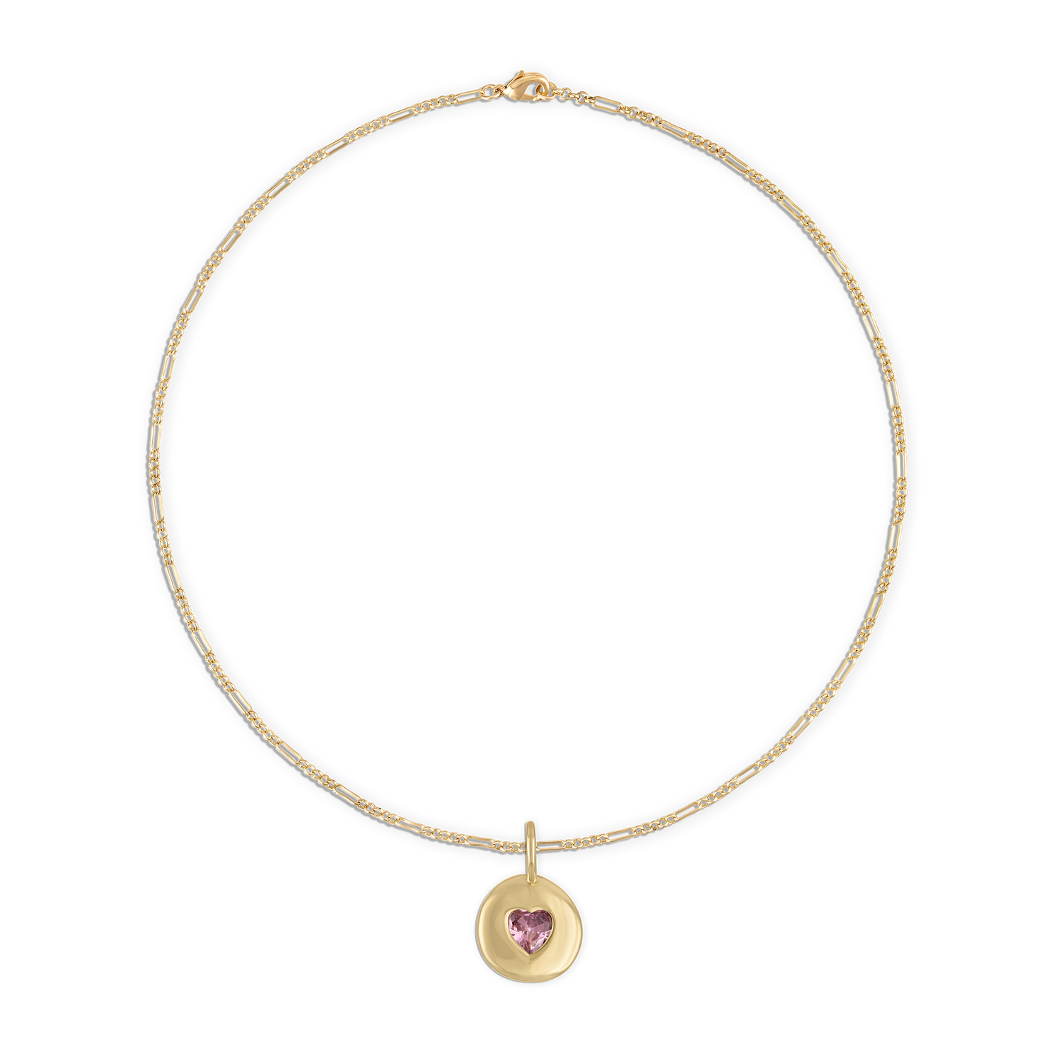 Round Heart Rolo Chain Necklace - Pink
