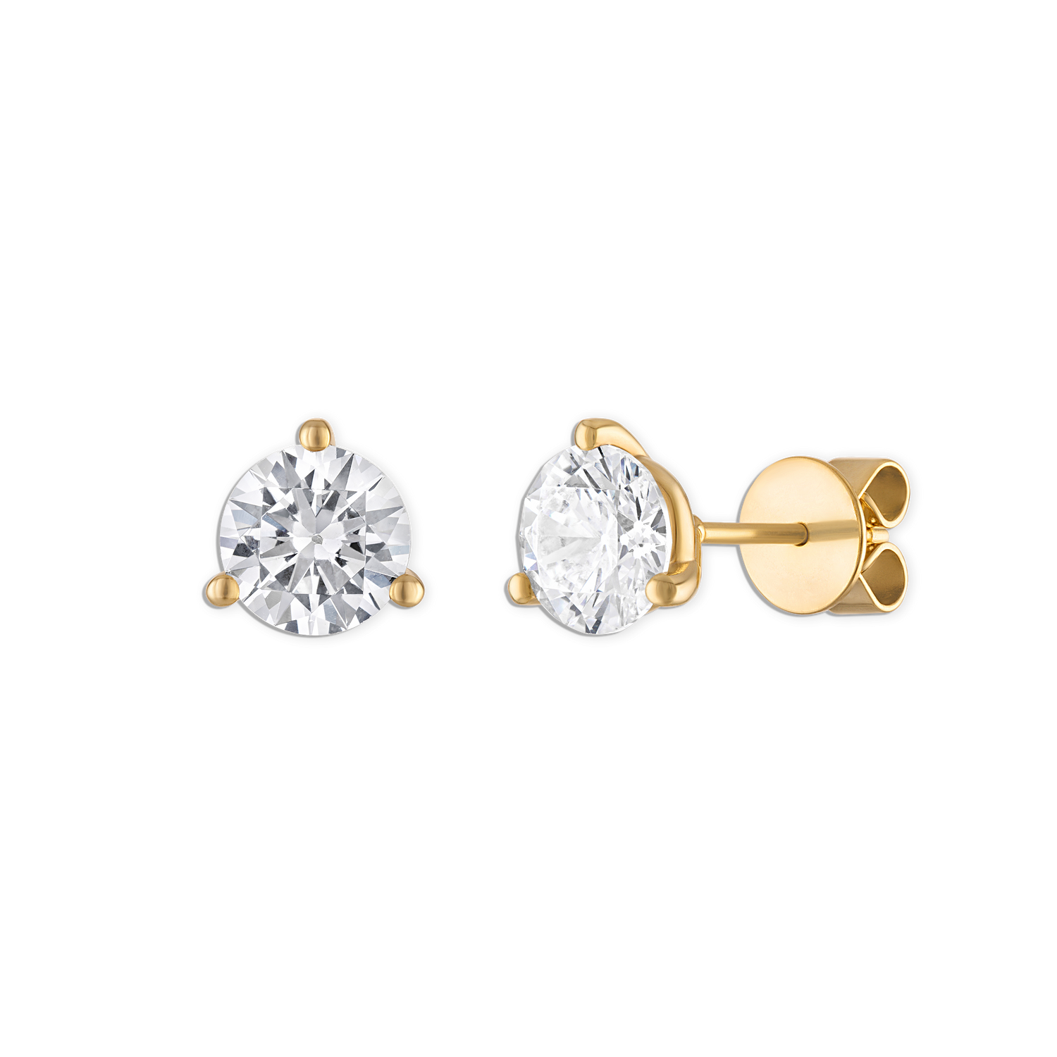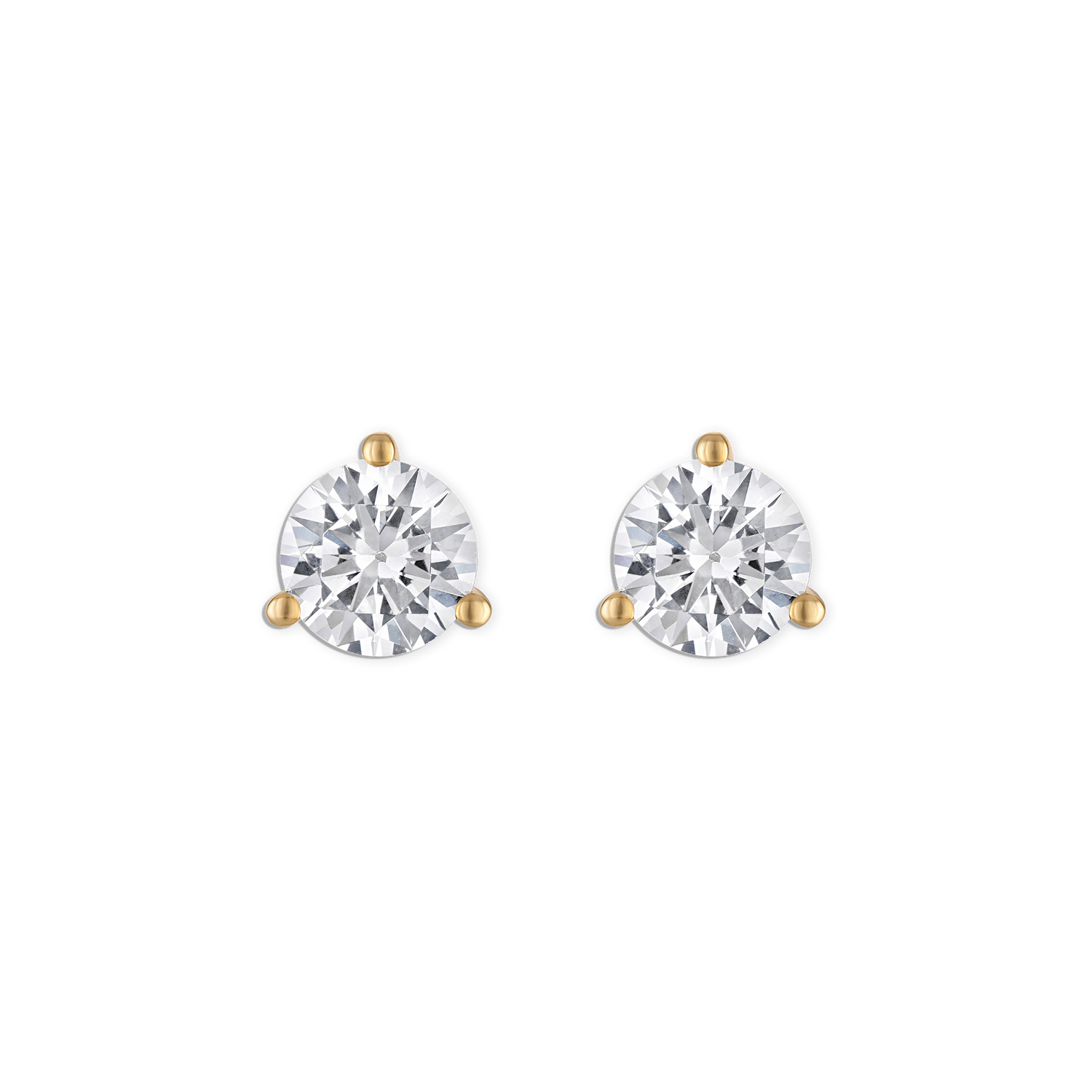 - 14k vermeil yellow gold 3 prong set round lab gemstone stud